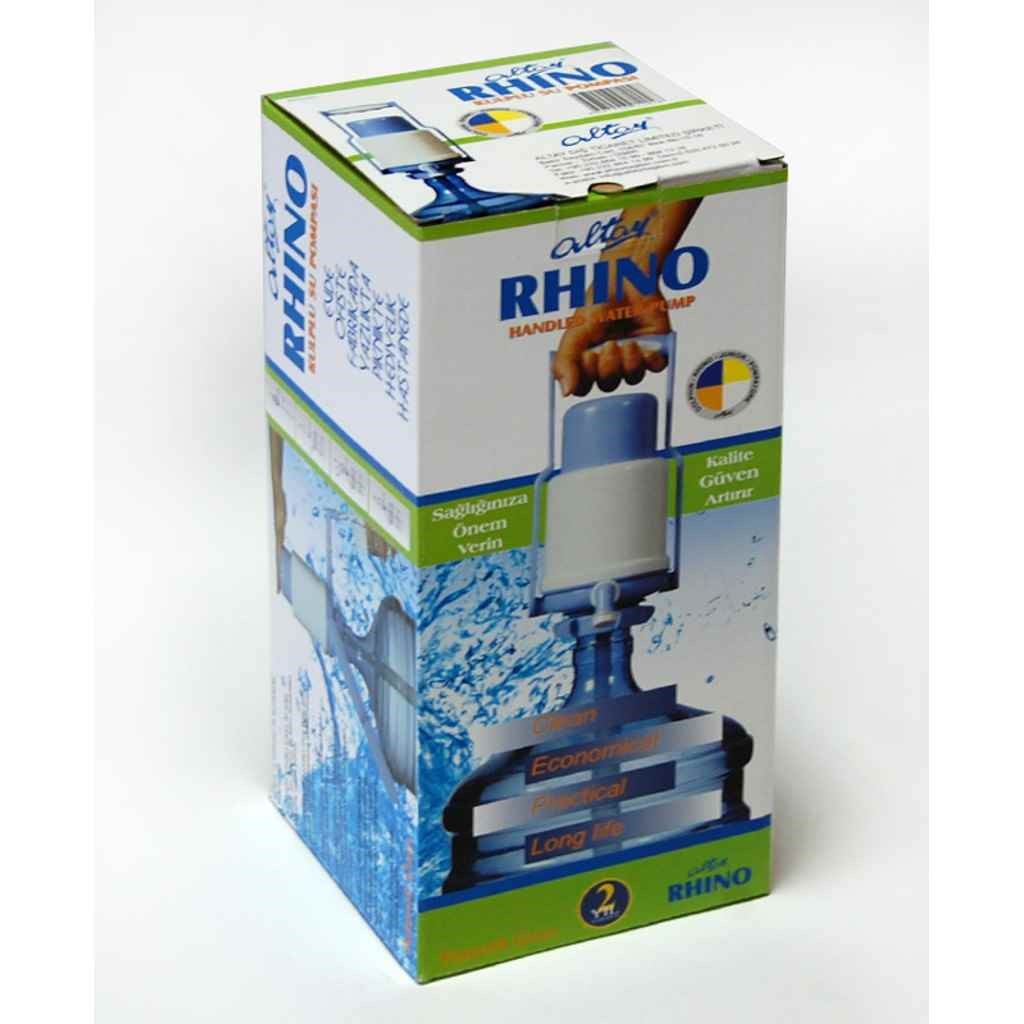 Ürün ÖzellikleriRhinoAltay Rhino taşıma saplı manuel su pompası dünyanın ilk taşıma saplı manuel su pompası niteliğini taşımakla birlikte sağlamlık ve ergonomiyi birlikte sunar. Özel tasarımı sayesinde kullanımda ve taşımada kolaylık sağlar. Kilit SistemiAltay manuel su pompaları kilit sistemi sayesinde tüm cam, plastik ve pet damacanalara uyumludur. Taşıma Sapı *Altay taşıma saplı manuel su pompaları dünyanın ilk taşıma saplı manuel su pompası niteliğini taşımakla birlikte sağlamlık ve ergonomiyi birlikte sunar. Özel tasarımı sayesinde bileğinize uygulanan basıncı azaltarak yorulma düzeyini azaltır. Hava Filtresi **Özel olarak tasarlanan hava filtresi, su pompalarken şişe içine dolan havanın dış ortamdaki toz ve benzeri olumsuzluklardan etkilenmemesini sağlar. Bu özel sistemin sağlayacağı faydalardan yararlanmak için filtrenizi ayda bir yenilemenizi öneriyoruz. Krom Nikel Yay